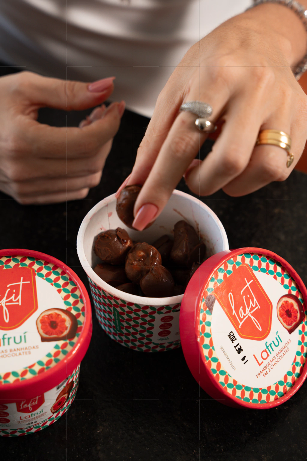 Experimente o LaFruí, onde framboesas selecionadas encontram camadas duplas de chocolate branco e 70% cacau. Produzido sem adição de açúcar, vegano e sem glúten, este sucesso da Lafit é a opção perfeita para quem ama a mistura do azedinho da framboesa com o docinho dos chocolates. Ideal para qualquer ocasião, o LaFruí é um deleite sofisticado que satisfaz todos os sentidos sem comprometer a sua saúde!